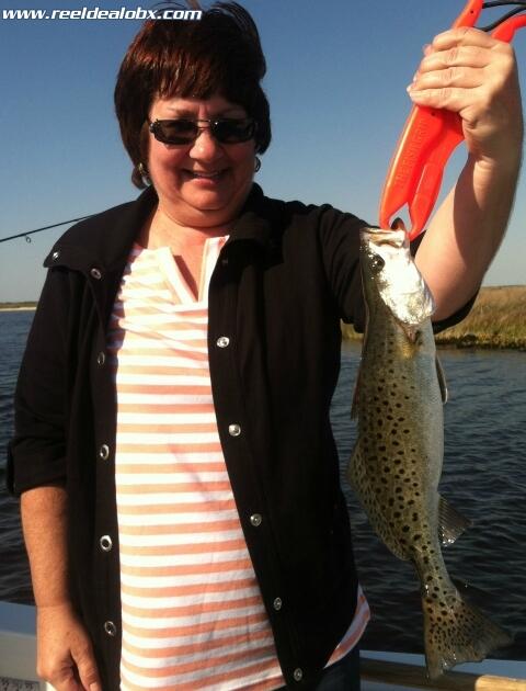 Today I had the pleasure of taking the Borgione family from the Cleveland Ohio area fishing. Dave, Kathy, Brad and Brian. We were dealt a stronger wind than anticipated so we steamed across the sound to fish the leeward side of the mainland. We scrapped along, fishing many, many different normally productive areas with not much to show. We picked a few specks and a flounder or two until the breeze fell out some. Then we steamed back across the sound to fish the areas that I had intended on fishing originally. All in all we fished a couple of hours extra and managed to salvage a day through determination and persistence. We ended up with 10 or so mixed flounder, a decent handful of drum and trout, a few bluefish and some hungry kicker medium croakers on the jigs. Very fun day spent with a classy bunch of folks. Their first time to the Outer Banks and I hope they enjoy the rest of their stay