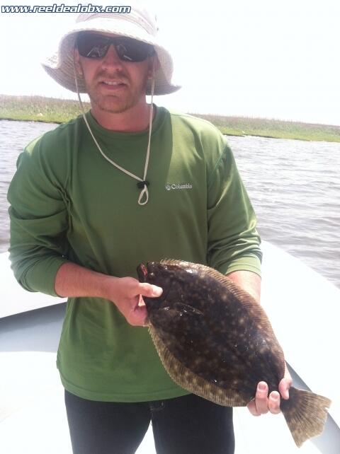 This morning Neil Brunck and his crew joined me for a challenging morning that covered many miles, many drifts and many moves. Yesterday, they had fished with my buddy JR on the Obsession and took a beating offshore but fortunately loaded the box with dolphin and tuna. Today was calmer but not quite as productive... They were great guys, good fishermen, and it helped us manage to pick out maybe 10 flounder, a couple puppy drum and the ever present token speck...Justin had the hot hand, and Clayton kept the group in check. Neil also brought the best chicken salad ever made. Fun bunch of guys and I hope to get the opportunity to really put them in em one day.