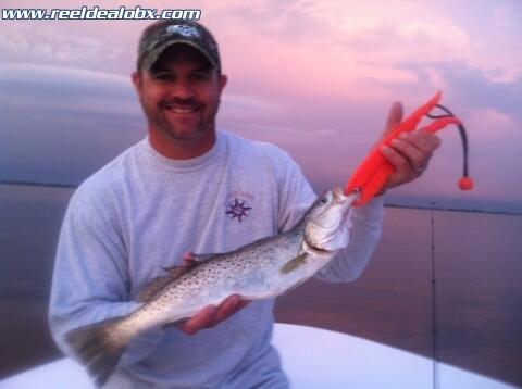 Met and fished with a guy today who I felt like I've known my whole life. Steve Smith rolled to the boat before time and solo. (That's two days in a row now the people have been early, which I like) He was in town with his family and decided to spend the early morning chasing the speckled trout while the wife and young kids rested. So we lit out as first light was just breaking. The morning sky was a beautiful deep purple to the western but showed signs of that impending a.m. thunderstorm just around the corner. And it was...We had just fished for a little while before we decided to hole up under the bridge while the thunder, lightning and rain came down and finally passed. We shot the breeze all morning, hitting on many topics. We caught some fish, covered some ground, casted a lot, got rained on some more...It was a thoroughly enjoyable trip for me because we hit it off so well and had a lot of things in common. He was an ECU Pirate by way of New Jersey, similar age, a hard worker, an old athlete, a family man, a believer in the word and common sense, as well as being eat up with the fishing. Between the rain and all the yacking we did, I just realized that I only took the one picture of his first or second cast of the morning. Anyway, pretty fish and a good dude to spend the morning with. He's one of the ones who gets it... Thanks again bud! Hope to see you back down here again