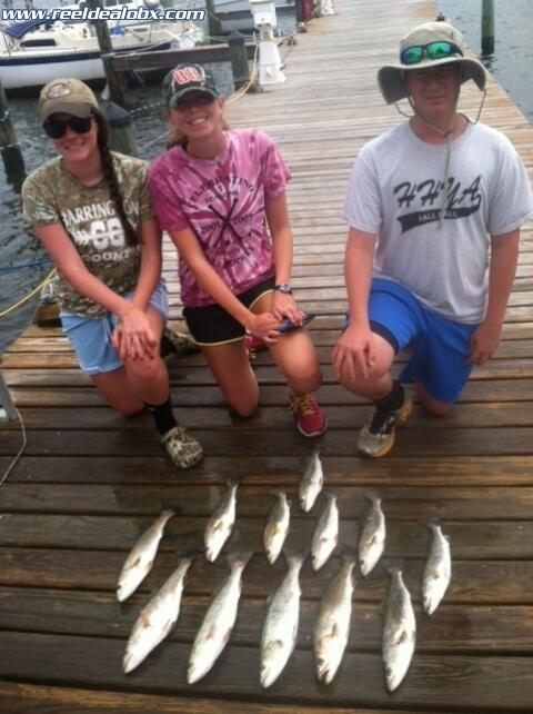 Blake Myers from the Cape May area brought his son and daughter and their friend down for a day in the trout. Haley and Bo were like most teenage brother and sister combo. They were very competitive...Emily, the neighbor from next door added a twist to the whole familial one-up dynamic as she slowly started to gain the hot hand. Dad stayed in the back of the boat and casted away, grinning as the three up front went back and forth, catching trout, making new rules to the game as they went along...It was a thoroughly fun morning and the kids ended up catching 35-40 trout with some really nice ones. We kept a limit for the kids and Blake talked about rolling them up and stuffing them with crabmeat. I'd say he's onto something there...