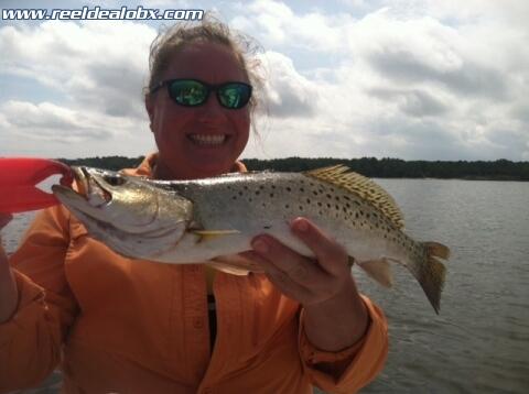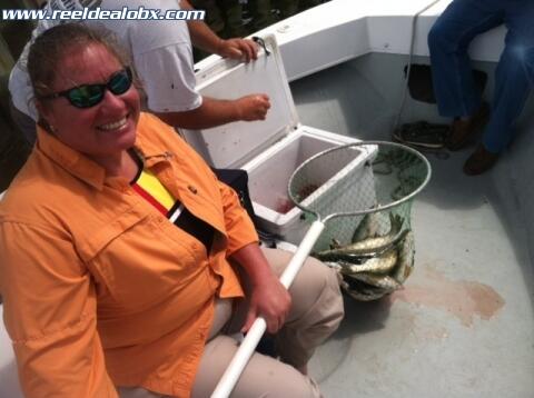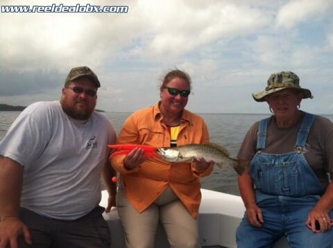 I had the great opportunity to carry Juli Davis, Bill Davis and Shane Baum out just yesterday. What a hoot this crowd is. Juli grew up down the sound...Not quite far enough down to be from Downeast, I learned...She and Shane are great friends and spent years entertaining and feeding duck hunters in an awesome old lodge near the mouth of Adam's Creek. You could tell they were all very familiar by the way they carried on...They took turns having the hot hand and ol' Bill had a hell of a time trying to break the habit of snatching the lips off em. (I think in a former life he was a professional bass fisherman who specialized in pulling big bass out of heavy vegetation)At any rate we ran all over the upper range of the sound and wound up on a nice bite where we ended up with three extra keepers on all of their last individual casts. Very Nice! Juli mentioned something about lard and cornmeal in their immediate future... Fun crew and I look forward to seeing them again!