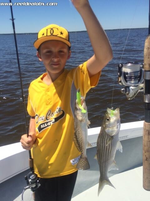 Brady got his jersey and hat yesterday, so like any 12 year old, he decided he'd wear it around all day. We had an hour and a half to make it happen so we went right to the source. Every cast for a while, mixed up specks and little rockfish. Time well spent with my favorite young partner.