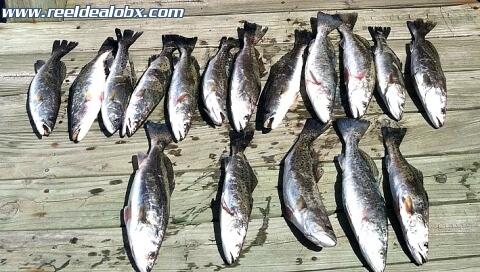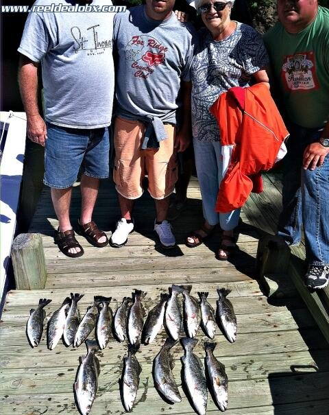 Had a family group from the Wabash and White River area of Indiana this morning. They were a real pleasure to have on board and they taught me how to Wabash 'em...Evidently that's a catfishing term that applies to an overzealous manner of setting the hook. I got to witness it first hand even. We all had a great time together and they did an awesome job, catching 25 trout, 2 puppy drum and 2 small flounder. If you catch any specks that are missing their lips, they probably did it. Thanks guys, I enjoyed having y'all and sorry for cutting your heads off in the photo...The glare had me.