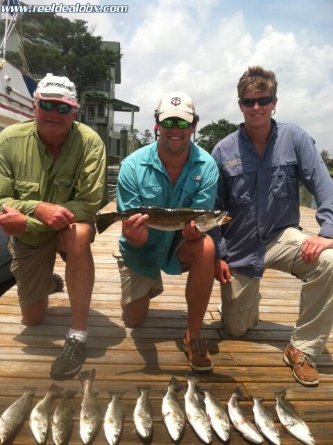 Today I had Tim Irwin and his sons Conner and Logan from Knoxville, Tennessee. Tim had done a lot of fishing all over and his sons were a couple of athletes and first class young men. I really enjoyed having them and we were fortunate enough to end up the day with a pretty catch of speckles, highlighted by Conner's fish pushing 25 inches. We moved around a lot and tried to stay out of the wind as much as possible. We probably caught around 30 or more and during the slow spells, I was entertained by the father and son banter between these 3. Great guys, thanks for giving me a call....