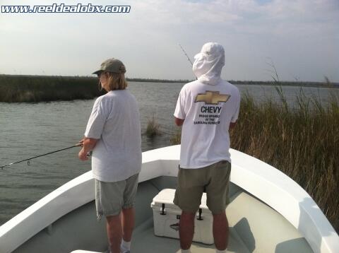 Friday the 13th proved to be a good day after all...Bob and Debbie McCollum of Raleigh joined me on a cooler morning with a steady westerly breeze. We decided to meet on the mainland side and just go fishing. I hadn't fished over there virtually all season and was excited to go looking. These two were the perfect companions for a trip like this. Both were patient and persistent and throughout the morning we picked away at speckled and grey trout, a handful at each place we tried. Later we beat the marsh points and caught a few drum here and there, finally ending up on a nice school of slot size drum that really made our day. Classy people, a leeward shore and no other boats always make for a fun time. Can't wait to see these two again sometime...