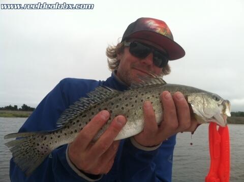 Friday I guided Mike Soiland and his brother Mitchell on Mike's boat for a circumnavigation tour of the island, the mainland and lots of spots in between. We hit a bunch of places and used a lot of different tactics and ultimately scrapped out a nice catch of speckled trout. I was really surprised that we didn't catch much else, only one striper. I was thinking that we'd find some drum or flounder as well, but as it was we enjoyed the action that we had. These guys were really first class and Mike has a nice setup for this kind of fishing. I look forward to seeing them around the marina in the future and fishing together again sometime. Thanks guys!