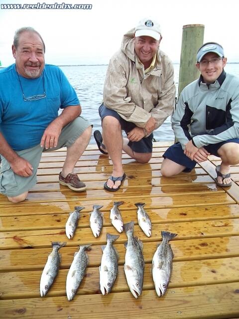 I got to take some homeboys fishing on Monday. Joe Fary, my lifelong neighbor and great friend, his son in law Andy Nazak and Harcum celebrity and longtime family friend Jimmy Miller. Its always a blast to take your friends out and it always seems like the fish cooperate as well. We waited for the rain to subside and rolled out mid morning. We set up and immediately had bites. We enjoyed this pace until the rain came back and Joe declared that it was probably a good time for them to go home and clean some fish. All in all we caught probably 20 and kept 9 for their Ballast Point fish fry. Great people and it made my day to carry them.