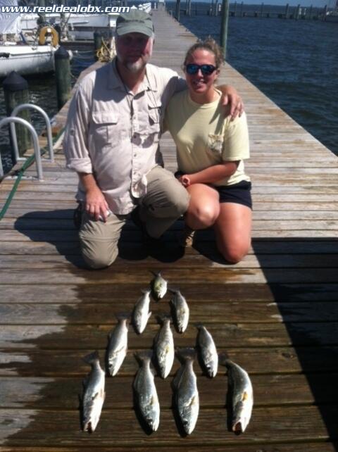 Today I had a father/daughter team of competetive anglers from up Va. way...Joe and Hanna Carson are friends of my family. Their family got to know mine through his service as DS for the York River District Methodist churches where he was quickly ushered into the Ware Neck fold whenever he made it out that way. He quickly learned how good the food was and became a regular and a good hunting buddy of my dad and uncle. What I didn't know about him was how well he raised young girls to become fishermen. I promised I wouldn't embellish too much, but suffice it to say that Hanna caught her fair share. Joe seemed as if he had been in this situation before, as he stood stoic in the bow...but was REALLY TRYING TO GET THAT NEXT BITE. Joe got some bites now, but the day was Hanna's...And I could tell down deep that there was no one any happier than Joe. We dealt with a lot of wind and some crummy conditions, but these two stayed on point, cast after cast until we realized we had probably gotten what we were gonna get. They even worked through having brought a banana onboard. Lord knows what we would have done under pristine circumstances...HaHa. I'm doing a lot of teasing but I sincerely enjoyed these two. I told Hanna that I hope my girls will still want to hang with me when they're her age...Heck, I won't even mind if they sack me up...Thanks again!
