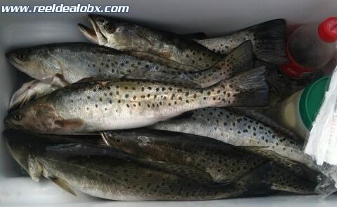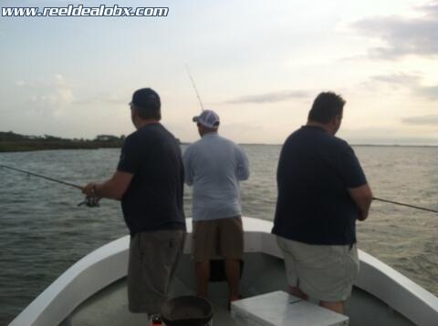 I had Bill Tucker of Kitty Hawk and a couple of his buddies from the Northern Neck of Va. out this morning. The SW wind increased steadily as the day progressed and there were squalls around us most of the time. We were lucky though; we never got rained on and managed to catch a nice mess of speckled trout and a puppy drum. The trout bit fairly well at times and were a beautiful 16"-20" class. After we kept enough for them to eat we turned loose more keeper sized fish at several different spots. These guys were laid back and I enjoyed having them on the boat.