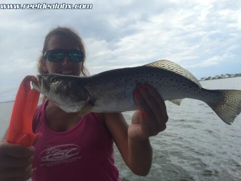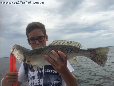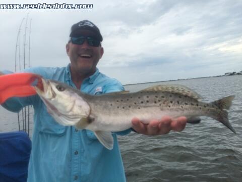 Today I had the semi Honorable and always entertaining Deacon, my friend from up the road a bit. He had us booked for two days and this was the first of them. He brought an awesome crew as well and we ended up with 3 big trout and 50 or more throwbacks and rockfish. We got a wet rear end, took a break, resupplied and did it again after the squall. The extra effort always pays off. Awesome morning!