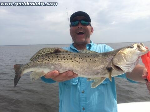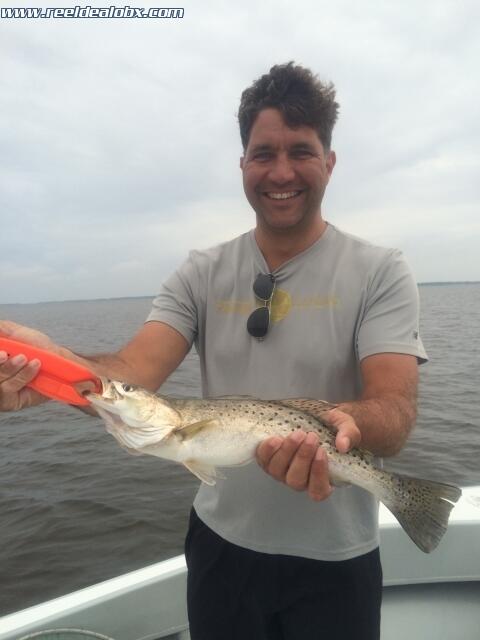 Deacon was back for round 2 and with the clouds and down tide, I had a hunch....I love it when thing work out and it makes you look like you know what you're talking about! Anyway, it was about time we landed on them and got some non stop, bigger class trout action. Couldn't have happened on a better day with a better crew. Really nice to meet Deacon's dad as well. Classy Va. gentleman.... Can't wait to do it again