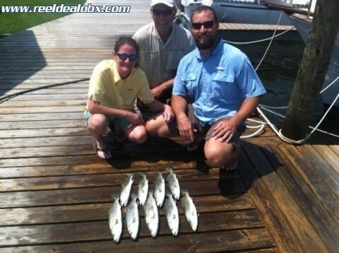 Rob Searcey from Wilmington brought his wife Linda and Pops along for a morning of action on the flats. The action had slowed a bit but we moved around a lot and fished hard to catch 40 trout. These guys knew how to handle a rod and it helped throughout the morning with the jig fishing. They kept a mess to eat and turned the rest loose. Fun morning and it was nice to meet these guys. And by the way, Linda caught the two biggest fish...