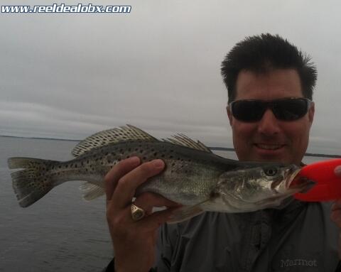 Friday I guided Mike Soiland and his brother Mitchell on Mike's boat for a circumnavigation tour of the island, the mainland and lots of spots in between. We hit a bunch of places and used a lot of different tactics and ultimately scrapped out a nice catch of speckled trout. I was really surprised that we didn't catch much else, only one striper. I was thinking that we'd find some drum or flounder as well, but as it was we enjoyed the action that we had. These guys were really first class and Mike has a nice setup for this kind of fishing. I look forward to seeing them around the marina in the future and fishing together again sometime. Thanks guys!